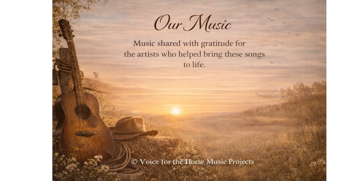 The music shared here was created through the generosity, talent, and dedication of a remarkable group of artists who helped bring these songs to life. Voice for the Horse is deeply grateful to the musicians and vocalists who lent their voices and hearts to this body of work.